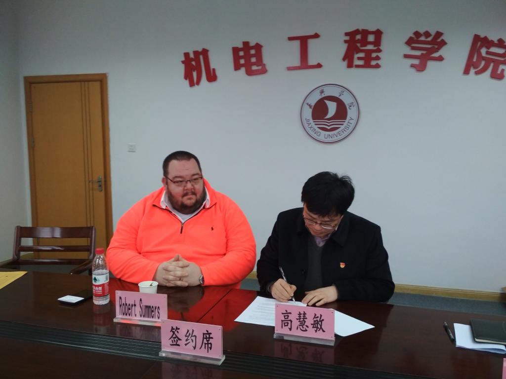 1月11日下午,美国纽约州立大学布法罗学院国际处长Robert Summers和张晶教授在外事处处长施敏颖和何俸华老师的陪同下来到机电工程学院进行学历教育合作事项的签约。机电工程学院党委书记丁玉泉、副院长高慧敏、副书记战昕、数信学院副院长张景军及机电工程学院相关系主任参加了签约仪式。