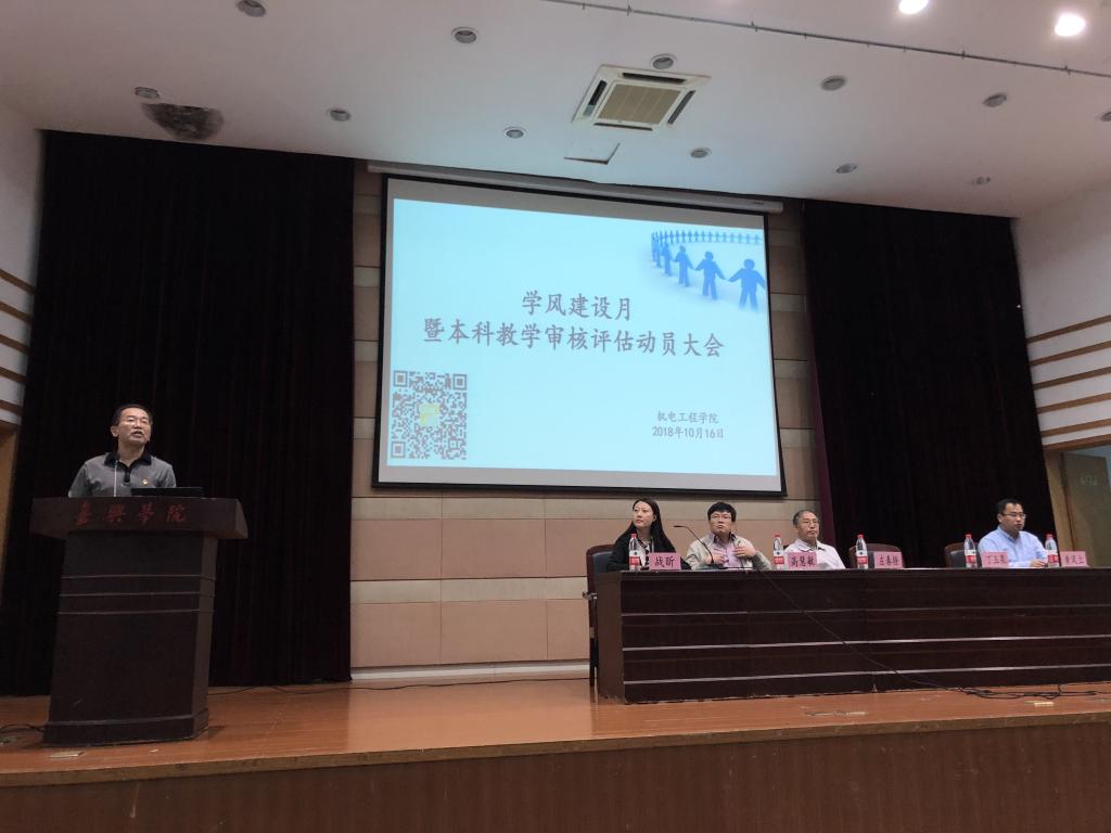 10月16日,机电工程学院在梁林TCL报告厅召开学风建设月暨本科教学审核评估动员大会。学院党政领导班子、辅导员、班主任、全体学生参加会议。会议由学院党委副书记战昕主持。
