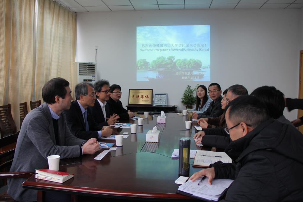 1月5日下午,韩国明知大学工学院梁辰承院长一行四人来学院交流访问,机电工程学院党政领导参加会见,国际交流与合作处李月顺副处长陪同访问。