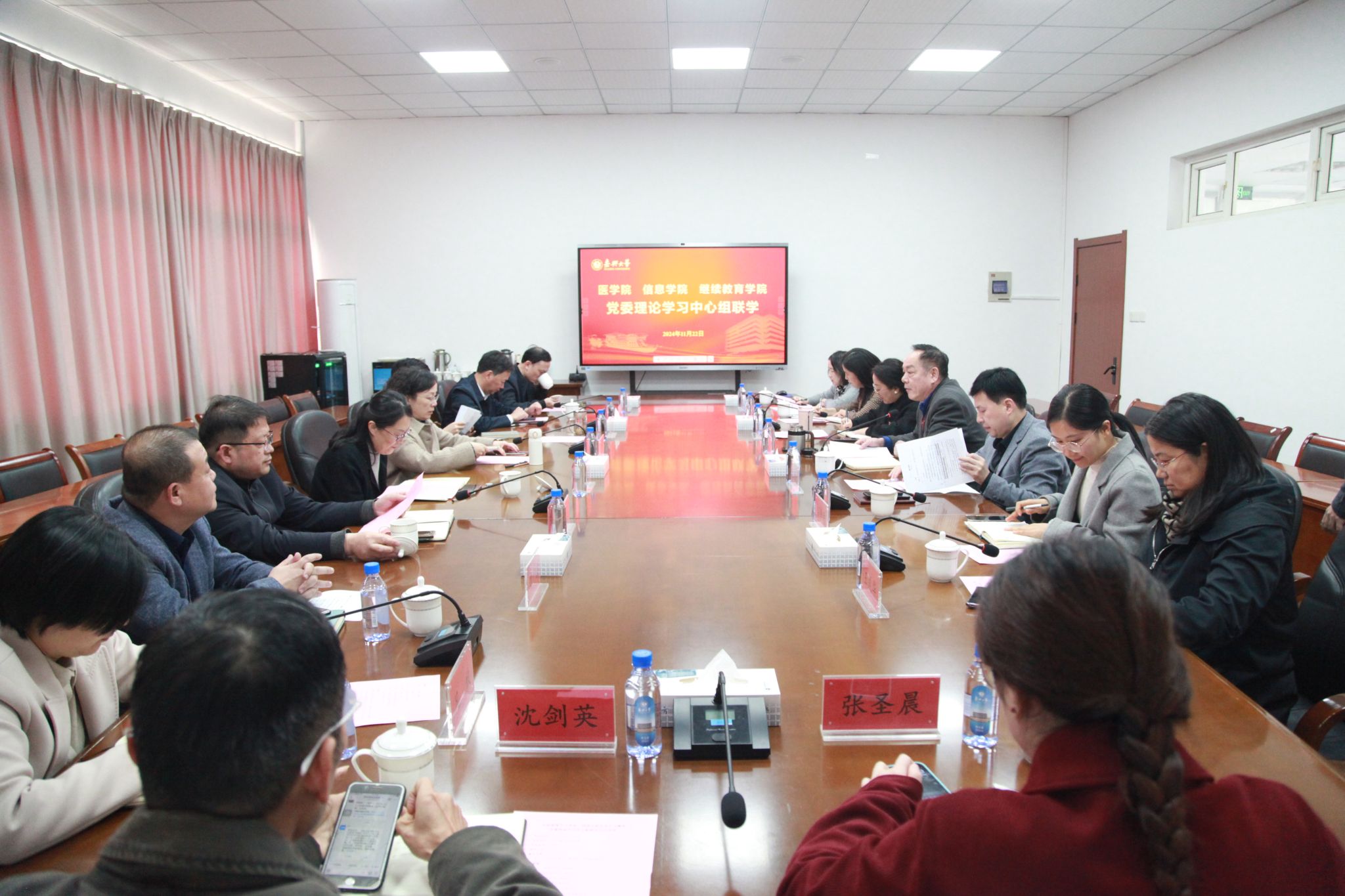 (机械工程学院)与医学院、继续教育学院在仁心楼426会议室开展党委理论中心组联学活动,全面系统学习党史。会议由医学院党委书记陈云飞主持,校党委委员、副校长(支持日常工作)张琦出席。