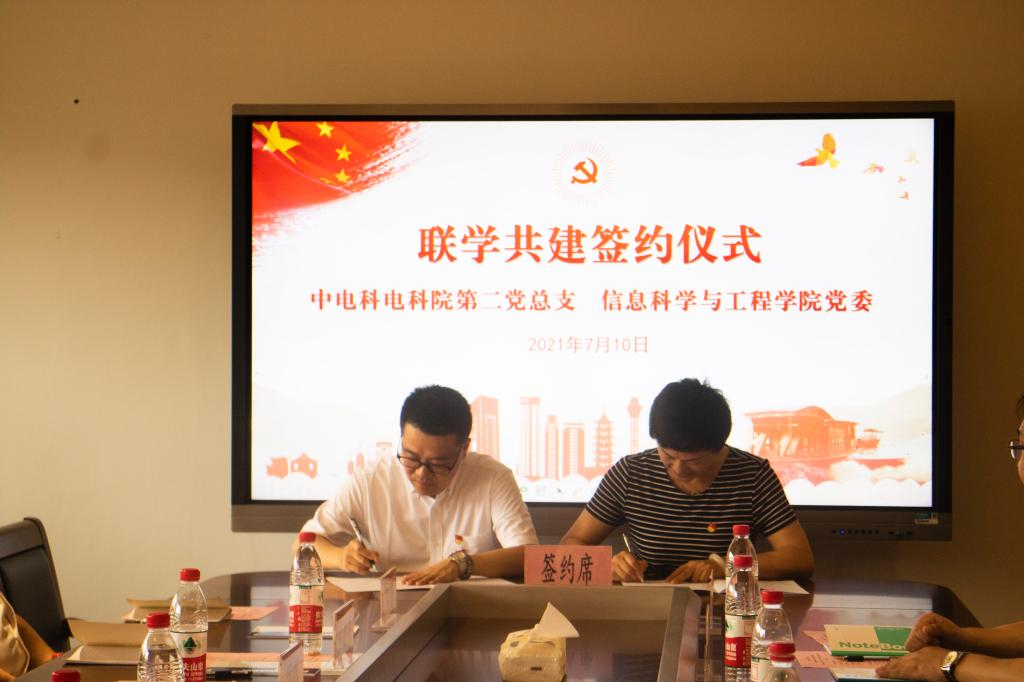 教工党员之家朱耀东向中电科一行介绍了学院基本情况,谢宏和叶海军就双方党建工作进行了深入交流,并签订了党建结对共建协议。双方表示将进一步着力党的建设,积极探索项目化党建工作新模式,以高度的政治责任感和使命感抓好“结对共建”各项工作,广泛开展技术合作,充分发挥各自优势,努力形成比、学、赶、超的党建工作氛围,进一步激发双方党员担当实干、锐意进取、永远奋斗的干劲和在中心工作、服务大局方面的战斗堡垒作用。最后,大家聆听了51风流