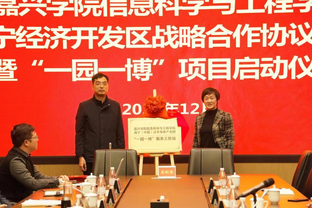 海宁(中国)泛半导体产业园“一园一博”服务工作站是学院继平湖市智创园后与地方联合建立的第二个服务工作站。学院坚持党建引领,以“科教兴国,人才强国”战略为指引,依托学科专业优势,积极搭建校企合作新平台,聚焦提升企业创新能力,聚焦关键核心技术,通过“一园一博”方式,开展更多实用性强的项目研究,解决企业发展技术难题,推动校企共建产学研用协同创新机制,逐步探索出一条“校地合作、产学结合、资源共享、互惠双赢”的发展之路。