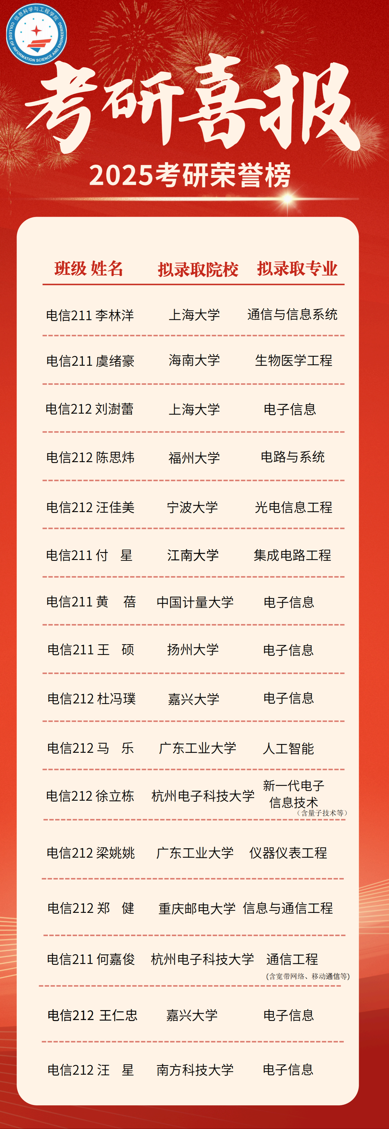 【2025考研捷报】信息学院"研"值巅峰!星光不负赶路人!